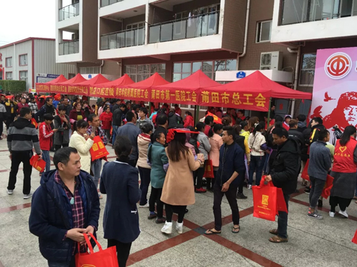 活动现场志愿者们通过开展工会业务咨询、法规政策咨询、社会科学宣传、禁毒宣传、通讯服务、医疗义诊、安全用电、免费理发、金融理财等各类便民服务。将雷锋精神带到企业,深深感染了企业职工,看到广大职工脸上洋溢的笑容,志愿者们感受到了正能量带来的成就感和幸福感。莆田市总工会党组成员、副主席黄芳到场参加活动。
